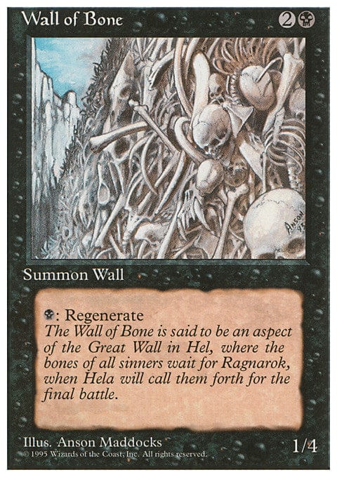 Blue : Regenerate Wall of Bone. (The next time this creature would be destroyed this turn, it isn't. Instead tap it, remove all damage from it, and remove it from combat.)
