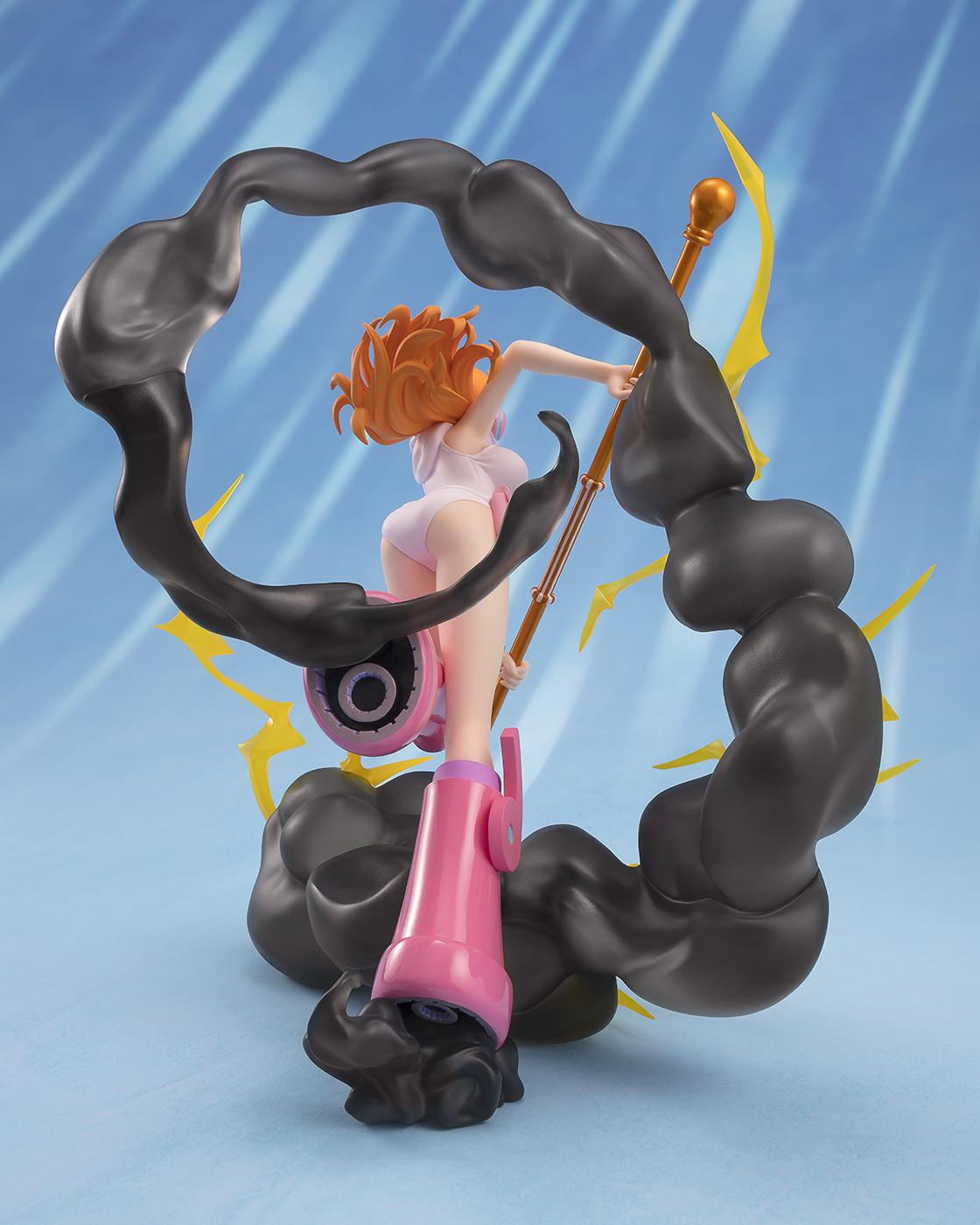 The future uniform version of Nami, who appeared in the Egghead arc, is recreated in three dimensions with powerful effects, reminiscent of the scene where she unleashes her thunderbolt.