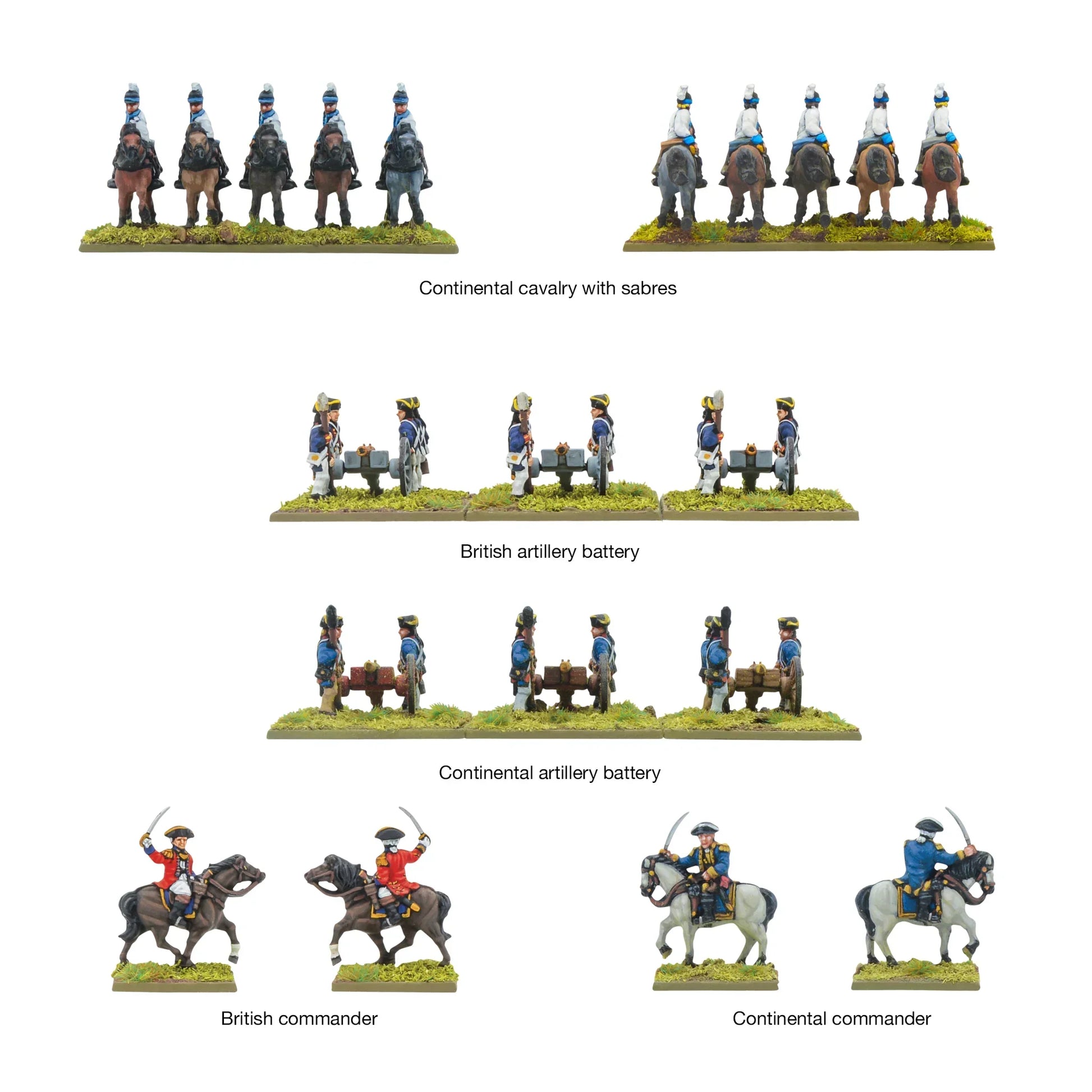 - 8 mounted Continental Commanders
