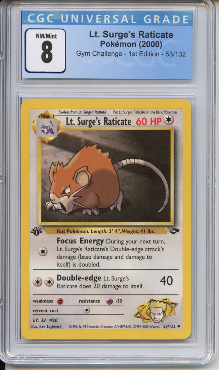 Pokemon Graded: 1st Edition Lt.Surge's Raticate CGC 8