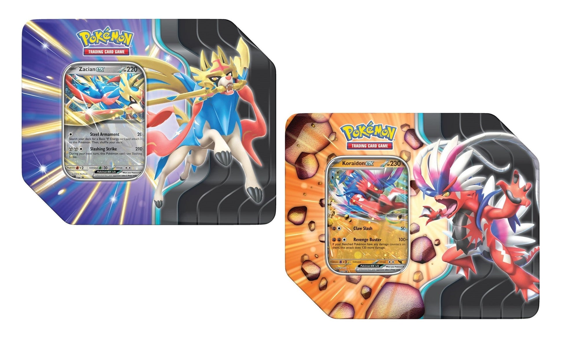 set of 2 tins, 1 of each kind (Zacian ex & Koraidon ex)