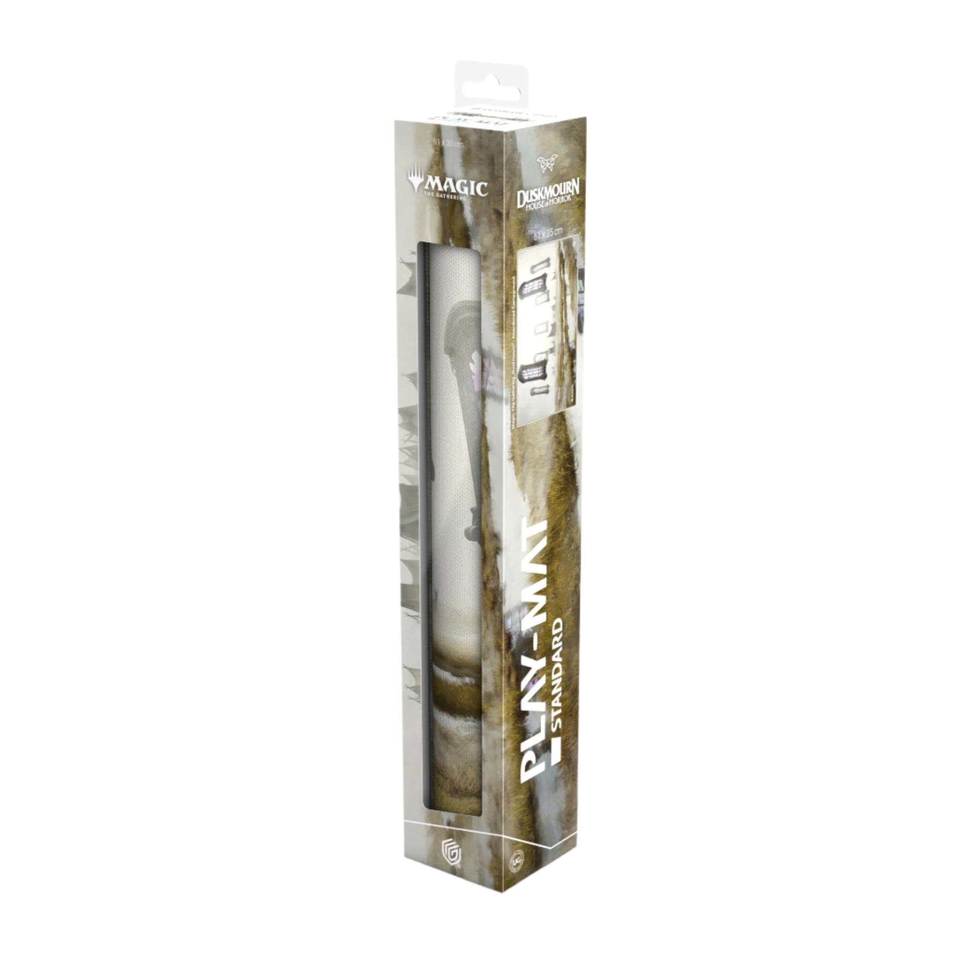 The 61x35cm Play-Mat protects cards and sleeves while playing and improves the gaming experience thanks to its anti-slip underside, while the stitched edges guarantee an even longer service life. The top side of the Play-Mat is printed with officially licensed artworks from Magic: The Gathering's upcoming set "Duskmourn".