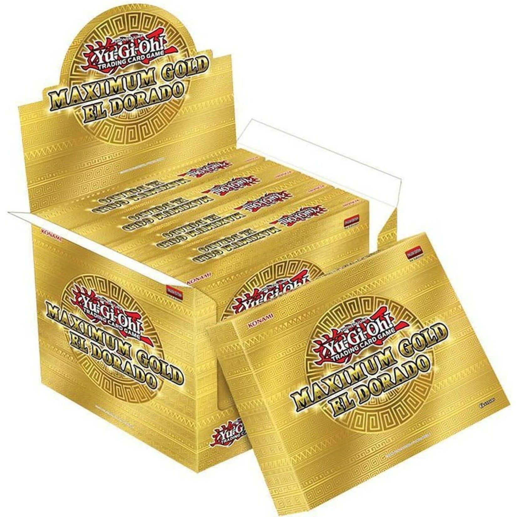 Each box includes 4 Maximum Gold El Dorado packs with 7 cards each: 2 Premium Gold rares and 5 gold-letter Rares.